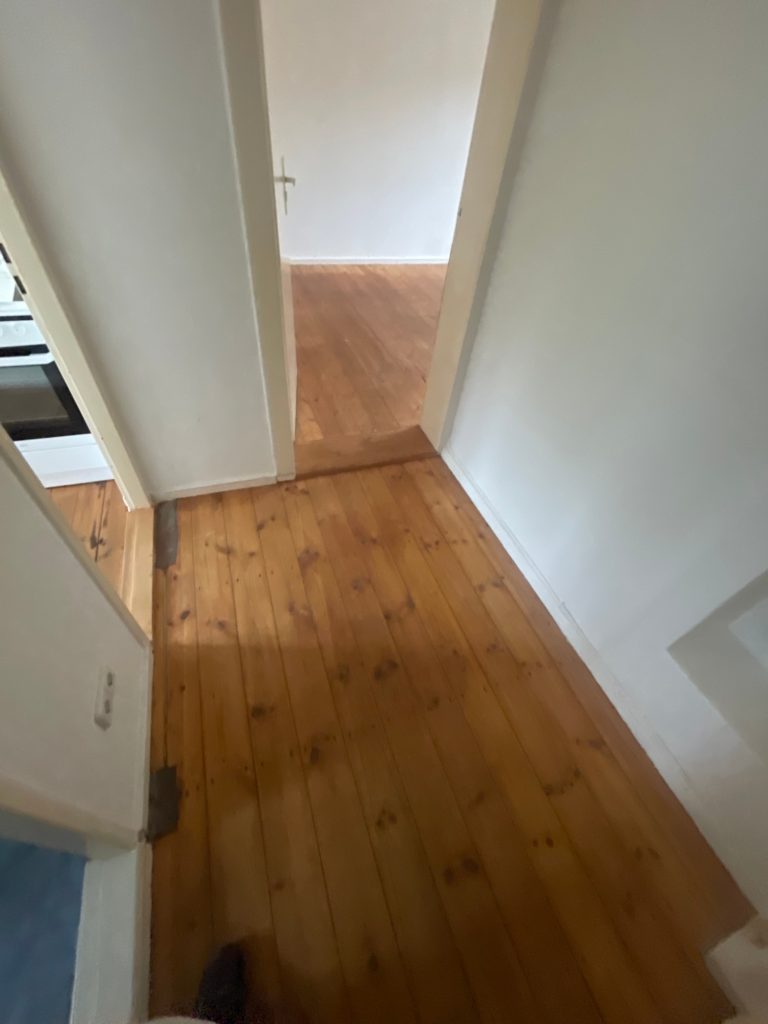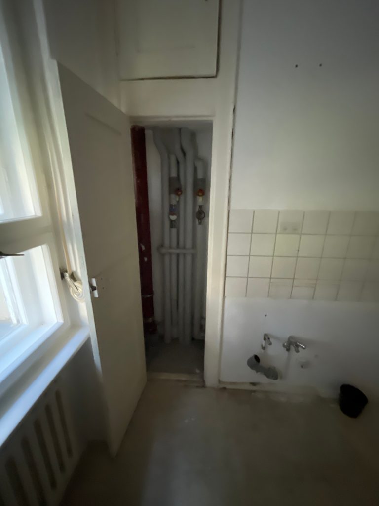 Die Bilder zeigen den ursprünglichen Zustand der Wohnung – geprägt von Abnutzung, veralteten Installationen und einem insgesamt stark renovierungsbedürftigen Eindruck. Der Sanierungsbedarf war deutlich sichtbar: von beschädigten Böden über vergilbte Wände bis hin zu veralteter Elektrik und Sanitärtechnik.